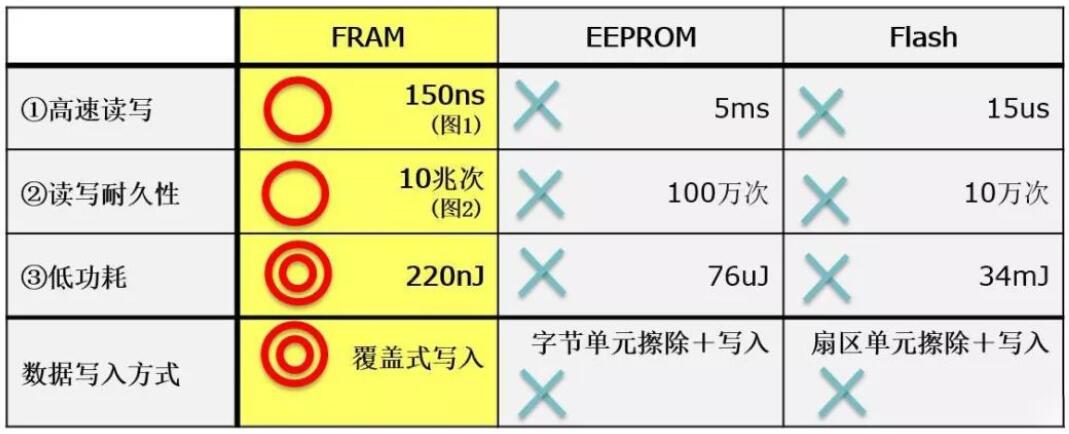 FRAM具有ROM和RAM的特點(diǎn),在高速讀寫(xiě)入、高讀寫(xiě)耐久性、低功耗和防竄改方面具有優(yōu)勢(shì)。