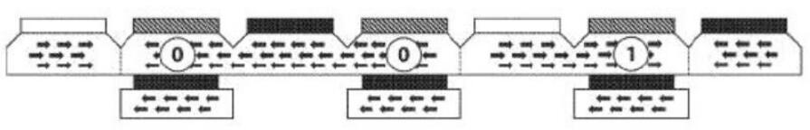 為了寫(xiě)入單個(gè)位,電流通過(guò)存儲(chǔ)線(xiàn),并且多鐵性元件和自由層的相互作用確定層之間的反平行極性為“ 1”(高電阻),層之間的平行極性為“ 0” (低電阻)。然后,通過(guò)減小存儲(chǔ)線(xiàn)和多鐵性元件之間的交換偏壓來(lái)更改存儲(chǔ)域的磁化強(qiáng)度(請(qǐng)參見(jiàn)上圖)。存儲(chǔ)器域是可獨(dú)立寫(xiě)的,只需要一個(gè)電流輸入即可存儲(chǔ)數(shù)據(jù)。這大大降低了能耗和寫(xiě)入周期所需的時(shí)間,從而提高了成本和性能效率。
